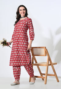 RED HANDBLOK KURTA SET